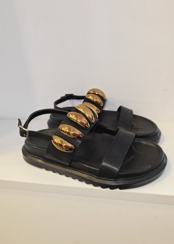 Bantlı taş detaylı rahat sandalet.
