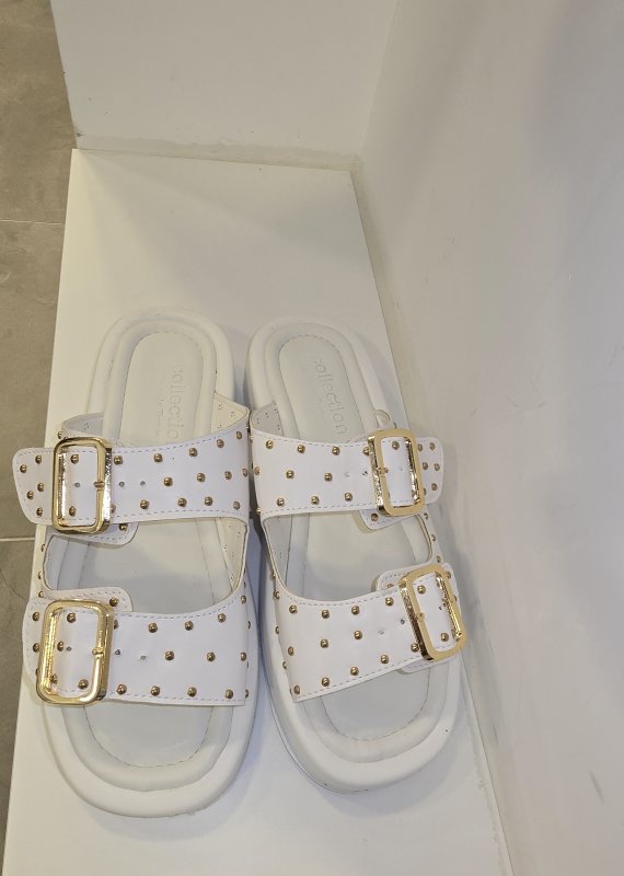 Zımba detaylı gold tokalı günlük terlik.