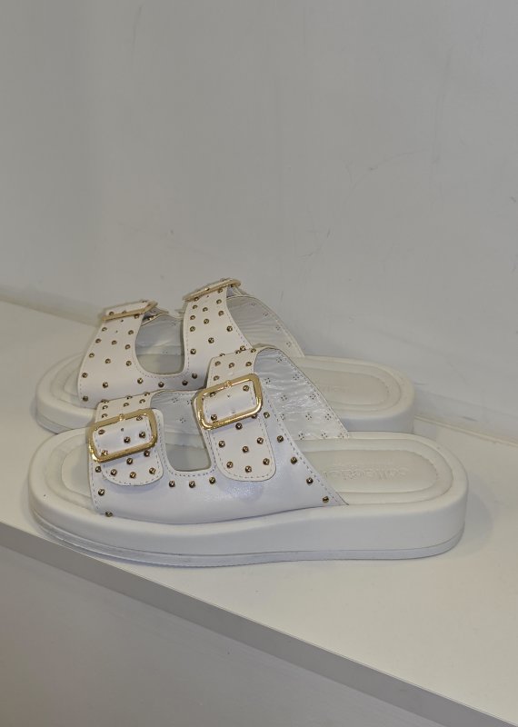 Zımba detaylı gold tokalı günlük terlik.